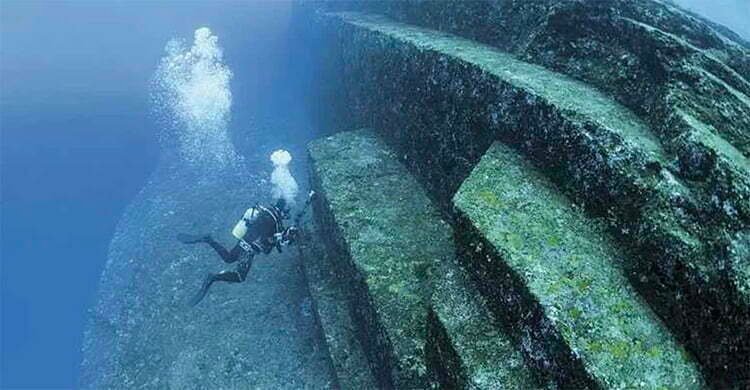 • A Estrutura de Yonaguni, Japão: Localizada no fundo do mar próximo ao Japão, essa formação rochosa apresenta degraus e plataformas que muitos acreditam ser vestígios de uma antiga civilização.